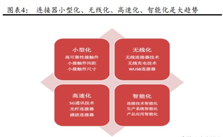 小型化、無線化、高速化、智能化連接器是主要趨勢。目前,全球連接器行業(yè)正處于以5G和新能源汽車為代表的新一輪創(chuàng)意需求的起點。在新能源汽車技術方面,——高功率密度電池組、電池充電航天電器、逆變器、DC-DC控制器3354等四種典型的電動汽車系統(tǒng)都增加了大量的連接器,汽車電子化的步伐正在加快和普及。隨著供應側電池等核心系統(tǒng)技術的不斷完善、產(chǎn)能中期增長、需求側政策的刺激和消費者需求偏好的轉變,新能源汽車領域可能正在進入創(chuàng)新需求的起點。據(jù)航天電氣公司官網(wǎng)介紹,5G Massive MIMO技術直接導致基站天線發(fā)展的三大趨勢:1)無源到有源天線發(fā)展,2)RRH和天線一體化,3)光纖取代饋線。就能耗而言,如基站的電源連接器,它可以滿足不斷增加的電流要求,并提供更小的封裝。對于通信領域常用的48V/12V/5V DC電源,其電源連接器的單芯(芯片)所承載的電流密度不斷增加,從30A40A50A60A甚至更高。同時,設備小型化、緊湊化的發(fā)展趨勢要求連接器占用的空間更小。例如,高密度刀片服務器取代了數(shù)據(jù)中心的機架式服務器,運行這些更緊湊的系統(tǒng)需要更高的電源密度和連接器信號密度。連接器行業(yè)深度報道:為什么要成為領導者