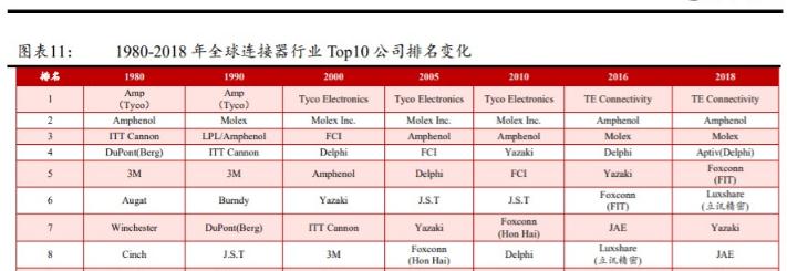 通過回顧安費諾和泰科的歷史,并簡要梳理消費電子和國防行業(yè)連接器企業(yè)的營收規(guī)模和排名歷史,我們認為連接器行業(yè)影響國內外競爭格局變化的共性有兩個:客戶拓展能力和產(chǎn)品前瞻性布局。